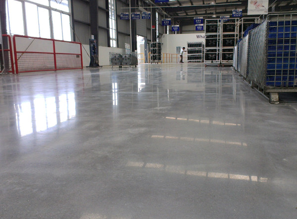 9.无尘硬化处理后的地面:耐磨,无尘,抗压,具有一定的镜面效果,使用寿命达20年,保养方便----只需拖地。