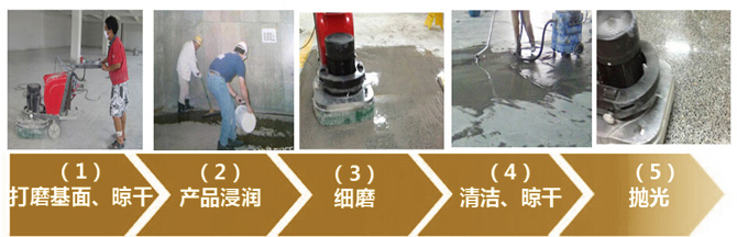 施工工艺:(清理基面→打磨、清洁→施工渗透密封固化剂(特殊基面可进行三次渗透或多次)→清洗基面→初步抛光→不错的抛光)
